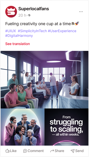 Professional posts, videos, and stories that sound like your brand and speak to your local market